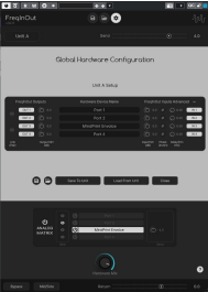 FreqInOut shows up in your DAW’s plugin list and is added as an insert or send on an audio track. On first launch, you’re guided through a configuration wizard before reaching the Global Hardware Config page.